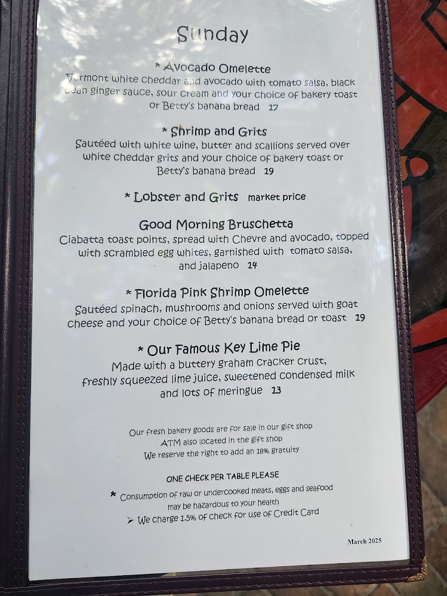 Evenings invite a shift toward heartier options—appetizers like the Caribbean BBQ shrimp and Atlantic sea scallops lead into satisfying mains such as filet mignon or surf and turf combinations, all prepared with an eye for balance and local taste. The menu also features standout items like the famous Key Lime Pie and lobster-infused dishes that echo the coastal location and culinary heritage.