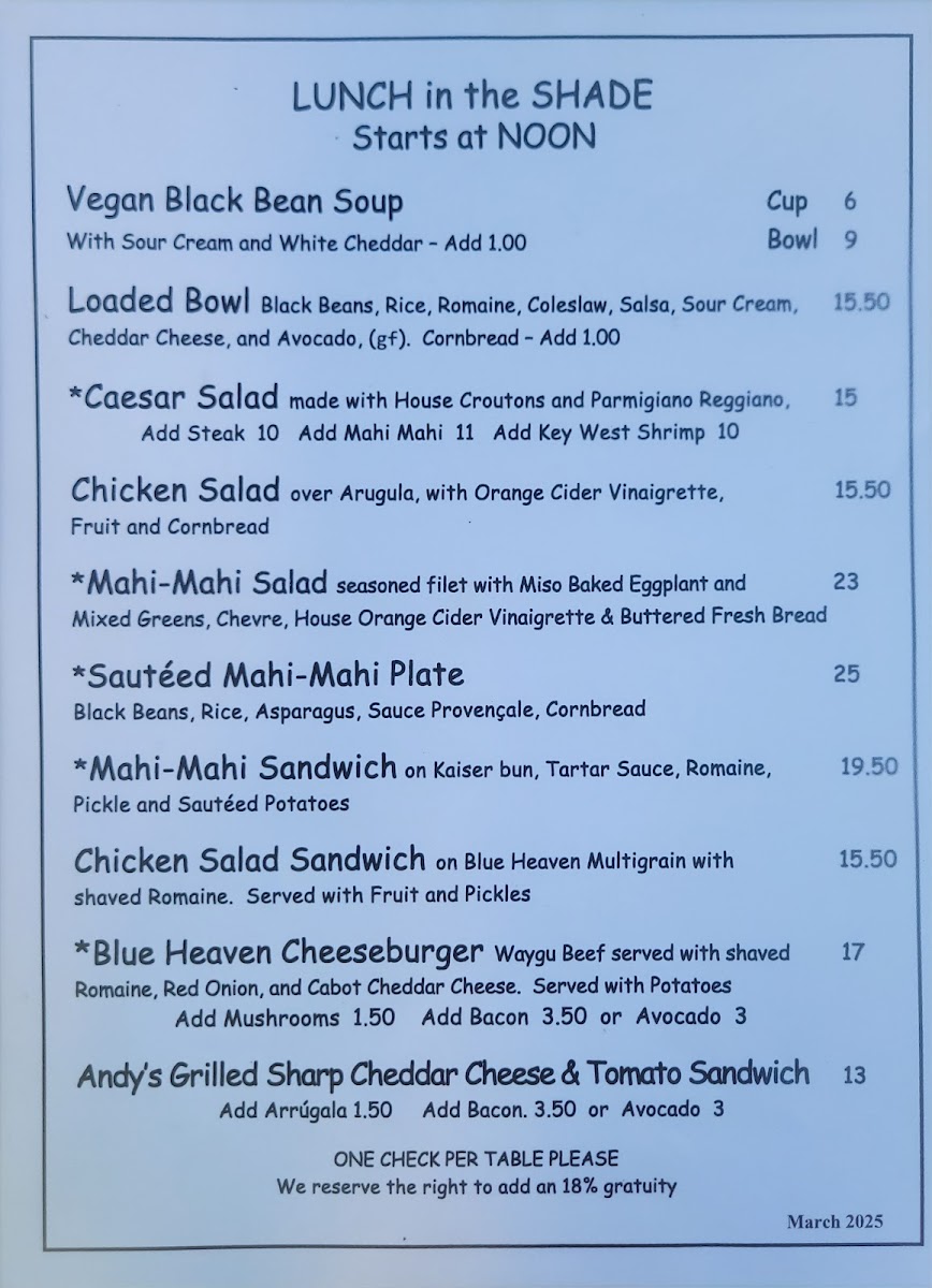 Blue Heaven offers a relaxed and inviting menu that draws from American, Caribbean, and Floridian influences, creating dishes that feel both familiar and refreshingly unique. The selections range from casual breakfast and lunch favorites to more thoughtfully crafted dinner offerings, making it a versatile spot for any part of the day.